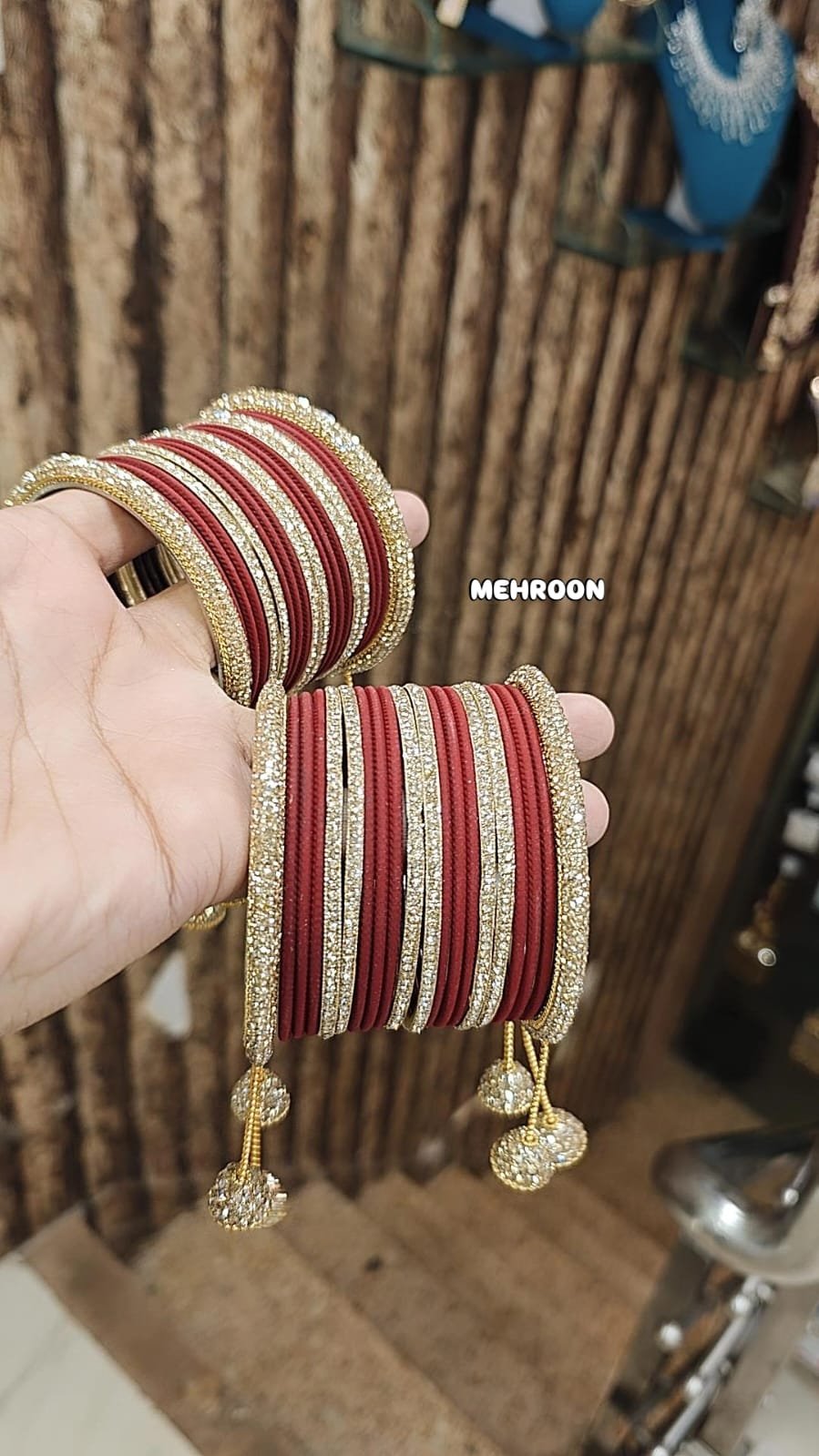 Add a royal charm to your look with this beautiful Shadow Golden Stone Bangles Set 😍. Designed with vibrant colors, premium metal base & top-notch quality, this set is special for both hands – perfect for every elegant occasion. 💖