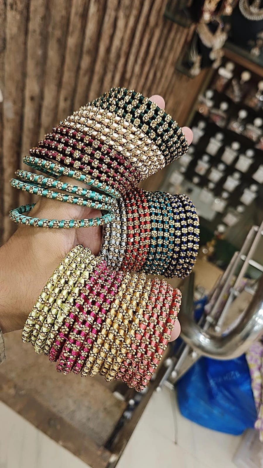 A stunning combo box of Thread Bangles in 12 Gorgeous ❤️ Colours, each shade beautifully crafted – 4 pieces per colour, with all unique tones!