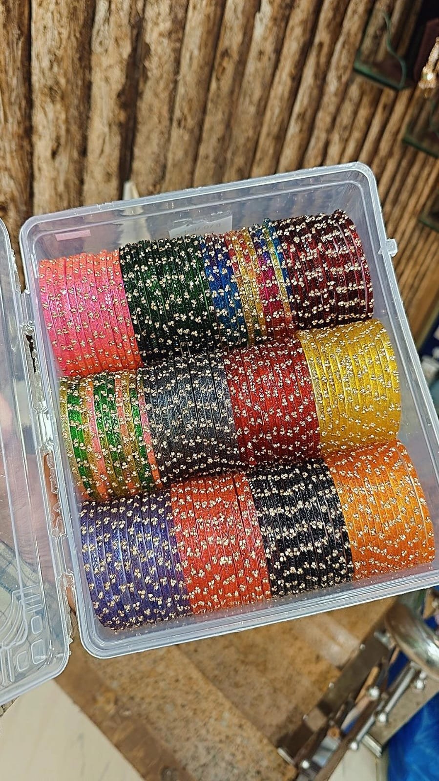 Discover a stunning combo box featuring 12 beautiful colours – each colour with 12 premium glass bangles! ✨