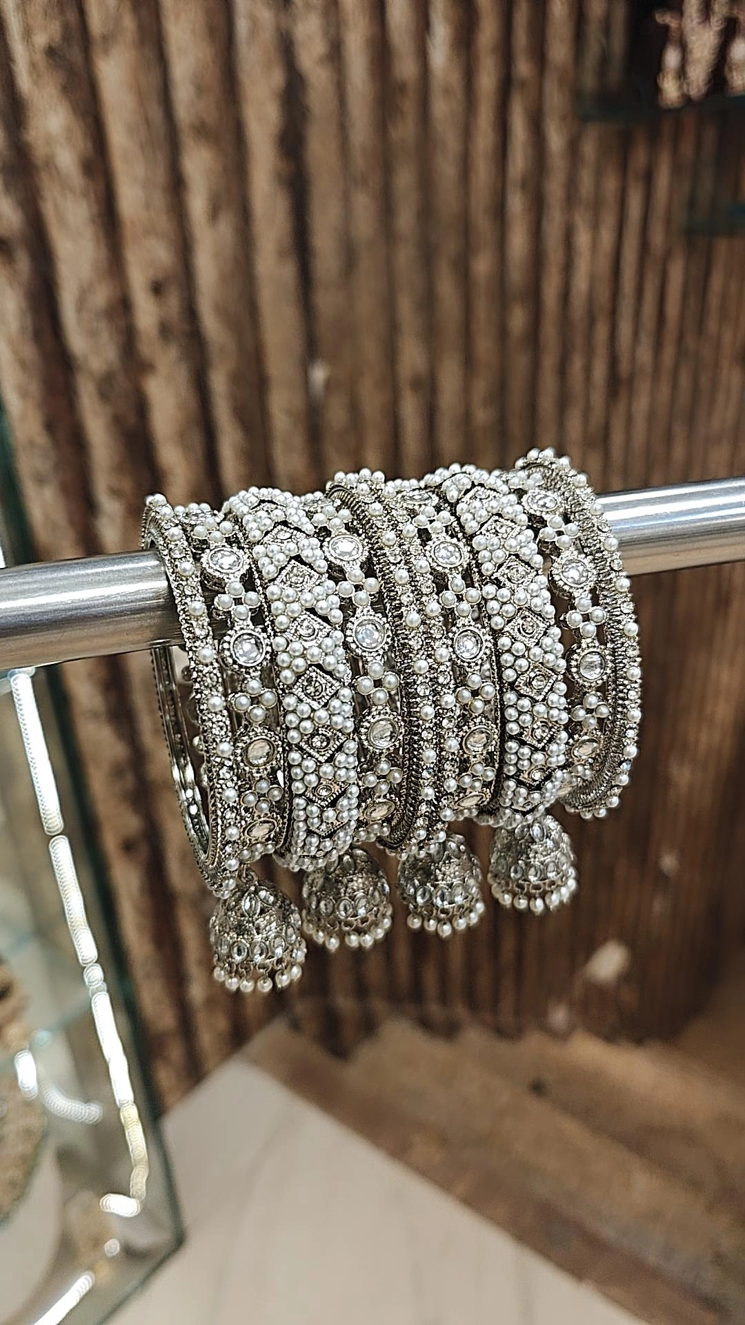 A BEAUTIFUL SIGNAL BANGLES SET WITH TWO DIFFERENT COLOURS OD SET WITH JHUMAR BANGLES .. AVAILABLE IN ALL SIZE WITH SAME IN QUALITY ..SILVER AND GOLDEN TOUCH LOOK
