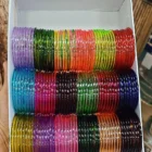 A BEAUTIFUL SILKY GLASS STONE BANGLES WITH BEAUTIFUL 16 COLOURS 16 DOZEN COMBO BOX WITH BEAUTIFUL 4 ROLL PLASTIC STORAGE BANGLES BOX AVAILABLE IN ALL SIZE WITH BEST QUALITY BEST LOOK EACH COLOUR TAKE 12 PCS AND 16 COLOURS.