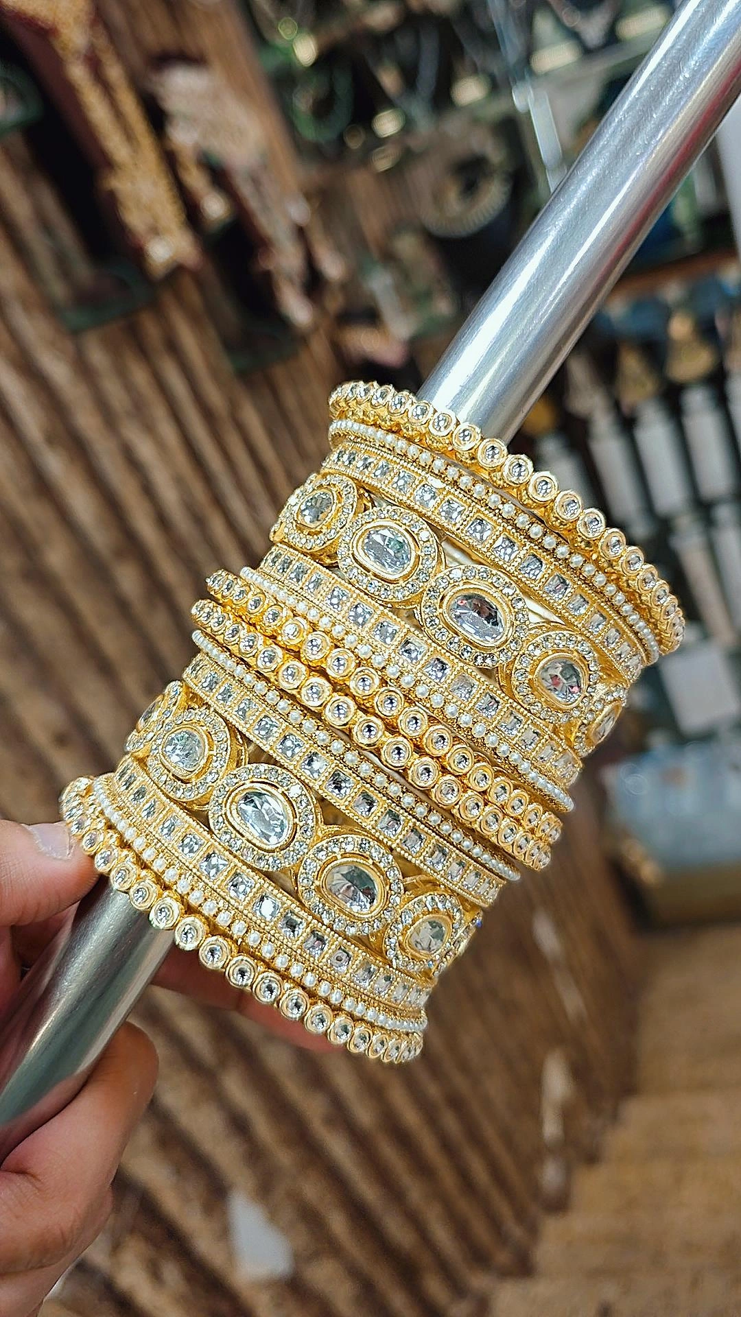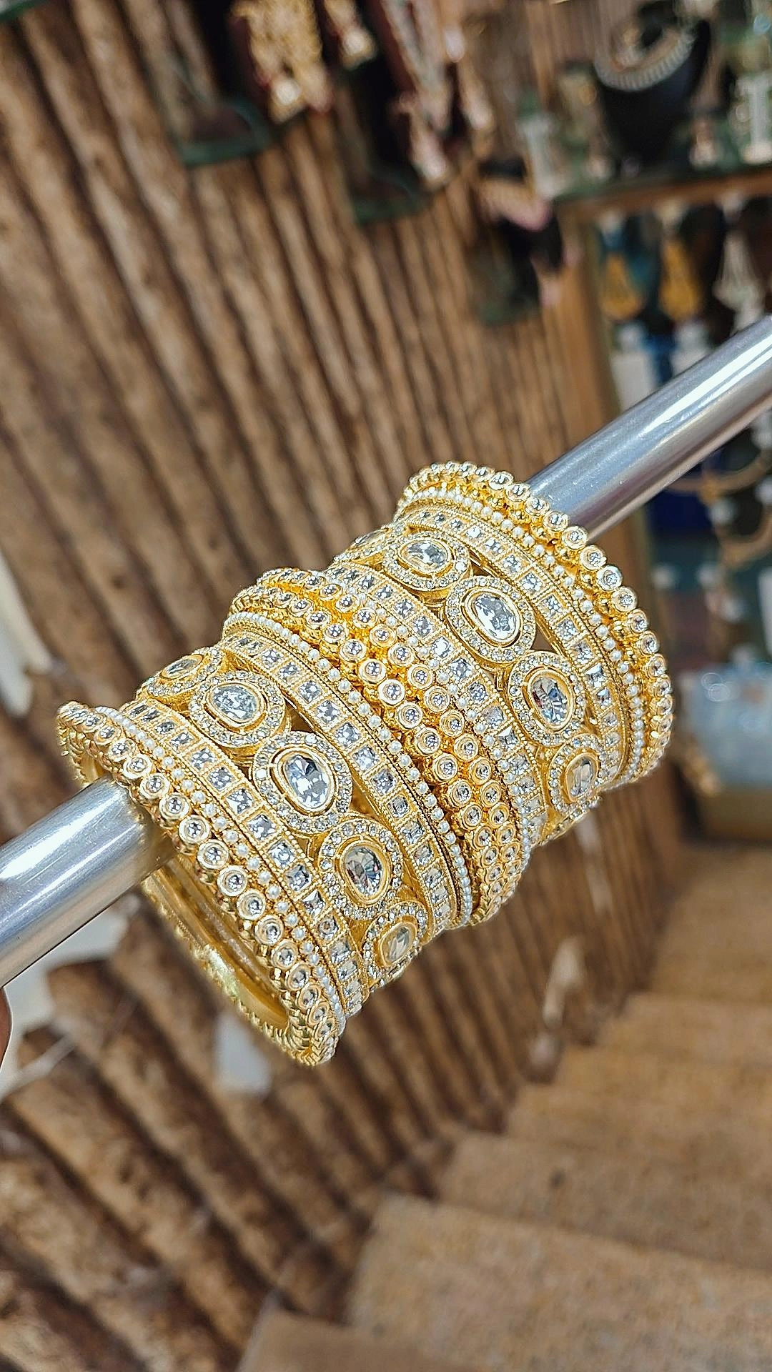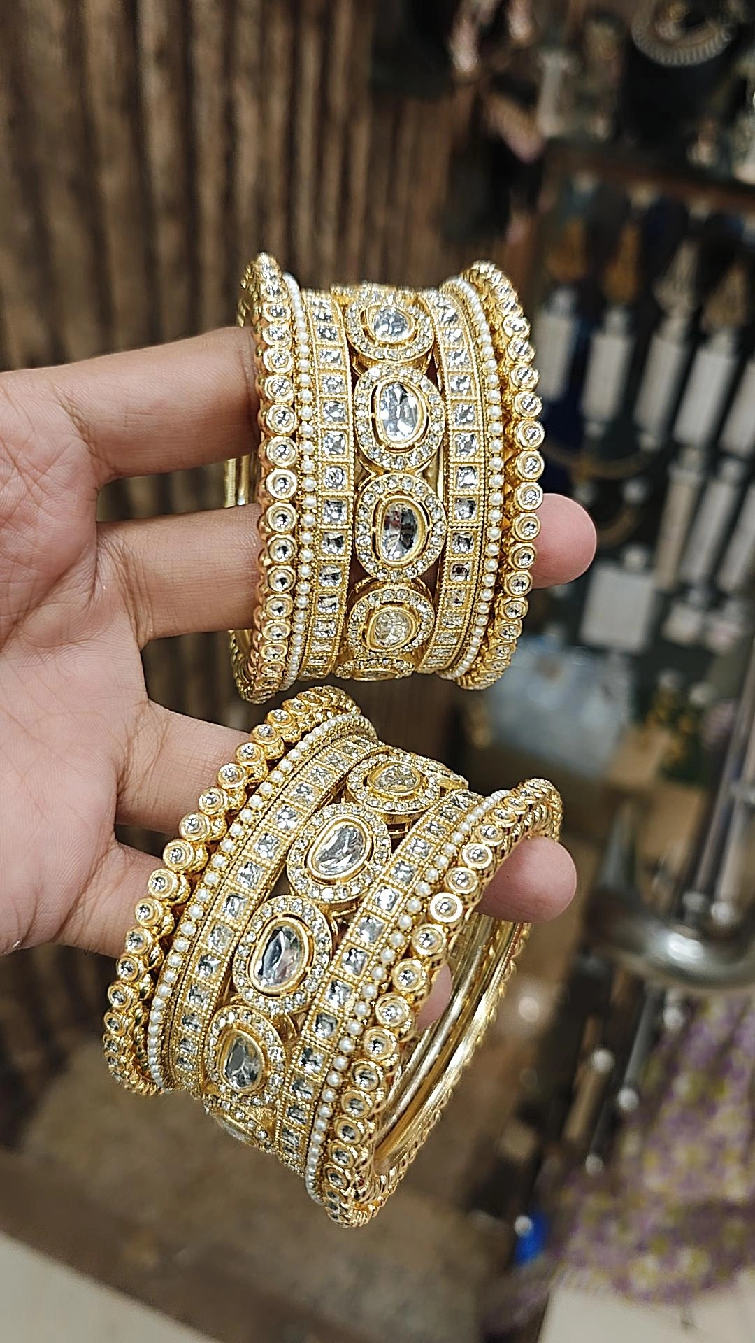 A beautiful gold square kundan set with moti and kundan touch look Available in all size with best quality and same look which u seen in pics ๐